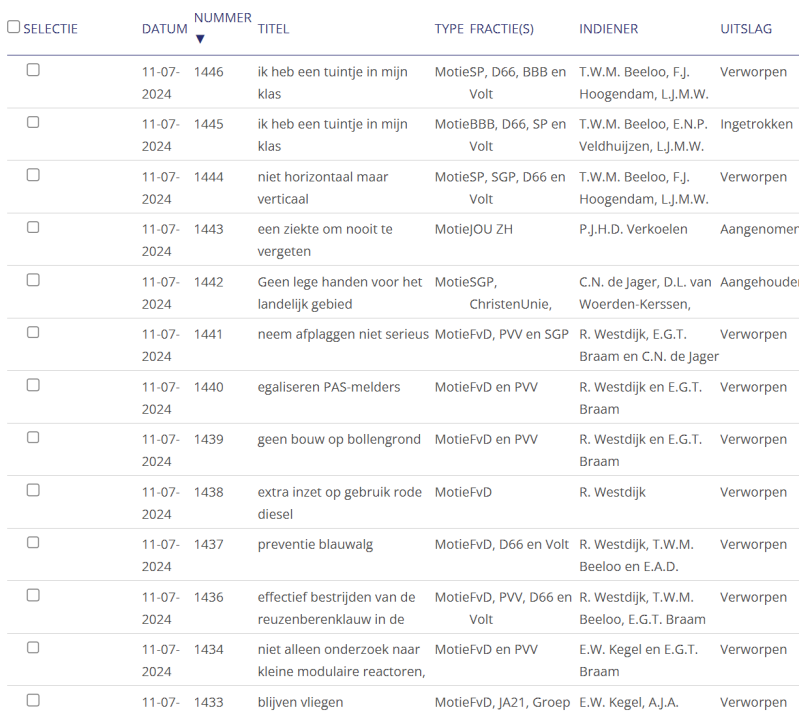 In de Statenvergadering van 11 juli 2024 werden er 55 moties ingediend. Veel daar van zijn kort voor de vergadering of tijdens de vergadering ingediend of aangepast. Het is onmogelijk om 55 moties serieus te bespreken en te beoordelen. Effect hiervan is dat er veel worden verworpen. De vergadering werd veelvuldig onderbroken voor overleg of afstemming. Slechts 14% van de moties werd aangenomen. Je kan je punt als fractie ook op een andere manier maken. Bijvoorbeeld door vragen te stellen, een toezegging proberen te verkrijgen, een persbericht te maken of een opiniestuk te publiceren.